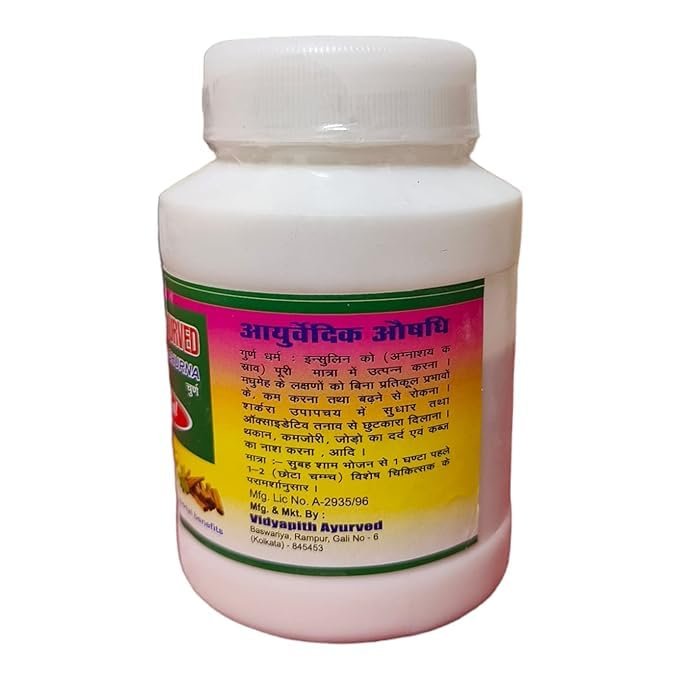 Vidyapith Ayurved Sugar Churna Special Powder 100gm MfG VIDYAPITH AYURVEDIC KOLKATA 9. Dosages – 1 table spoon twice a day with luke warm water before taking food. Avoid- spicy, Fried, sweet, banana, potatos